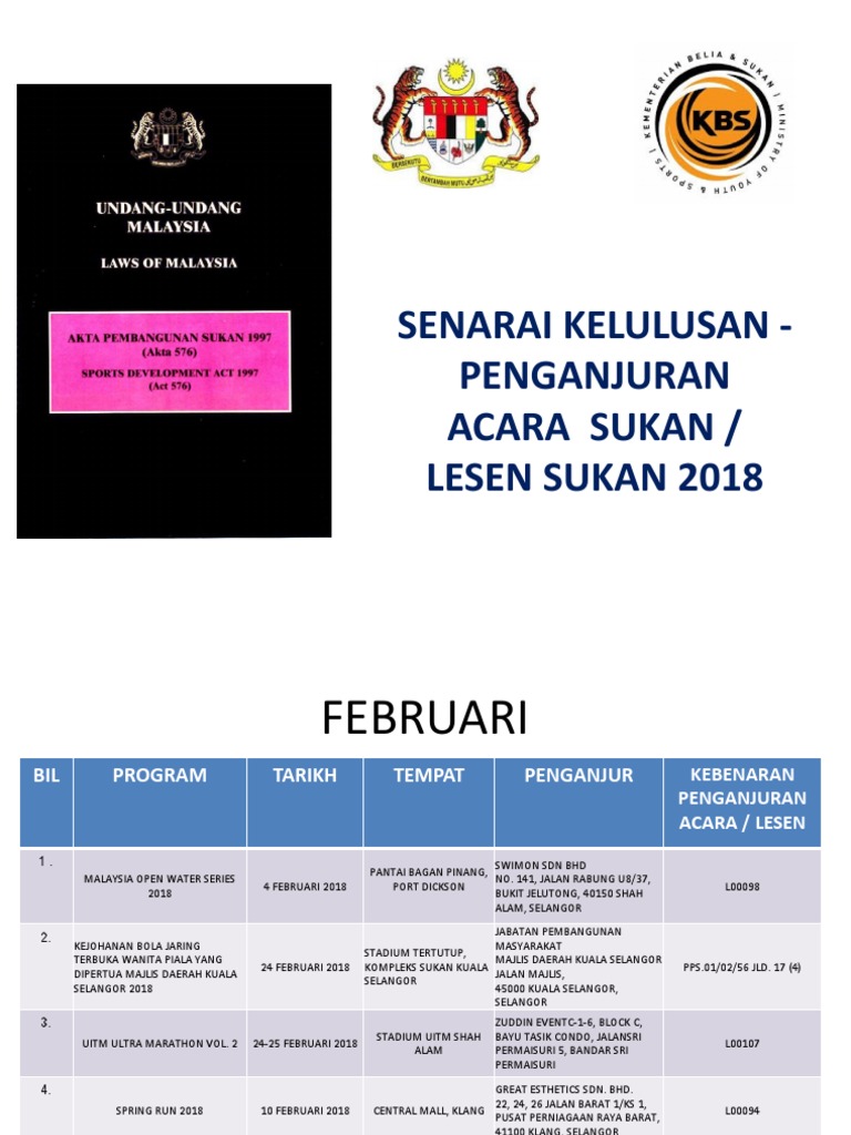 Senarai Kelulusan Penganjuran Acara Sukan Lesen Sukan 2018 Pdf